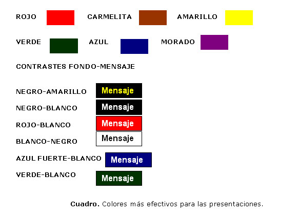 sentación.8. Utilizar colores recomendados. (Cuadro)